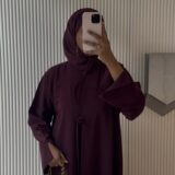 Elegant and effortlessly modest, this deep burgundy abaya is designed for a refined, timeless look. Crafted with a smooth, structured fabric, it features a relaxed silhouette, wide sleeves, and a subtle front tie detail for added sophistication. Perfect for both everyday wear and elevated occasions, it pairs beautifully with minimal accessories for a chic, polished finish.